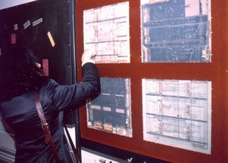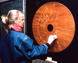 INTERAKTIVE KLANGRELIEFS 1994 mit Besucherin